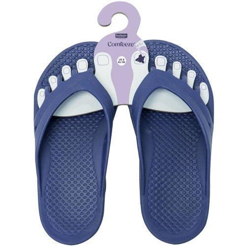 Comfeeze by Footlogix™ sandals are designed with a unique five-toe separator that offers exceptional arch support and a deep heel cup, promoting optimal foot and toe alignment for improved balance and stability. These recovery sandals help prevent tired, aching legs and enhance blood flow and circulation. Ideal for technicians, Comfeeze by Footlogix™ ensures even toe separation for flawless polish application. Crafted from durable, waterproof, and easy-to-clean materials, these sandals feature a non-skid sole and provide all-day comfort.