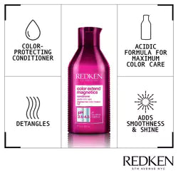 Redken Color Extend Magnetics conditioner for color treated hair leaves hair feeling softer, smoother and helps prevent hair color fade. This hair conditioner provides easy detangling and nourishment from root to tip to ensure shiny, vibrant hair color.