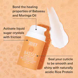 Bring bleached, dry, damaged hair back to life with this luxurious cream to oil leave-in treatment. Liquid sugar crystals are activated by friction bonding Babassu and Moringa Oil into the hair. The cuticle is sealed smooth and shiny with naturally acidic Rice Protein.